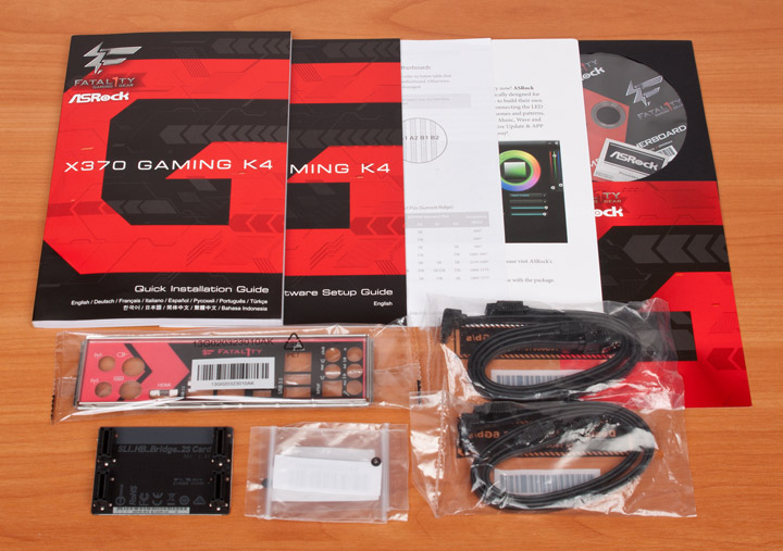 - четыре кабеля SATA 6Gb/s, два из которых с Г-образным разъёмом на одном из концов.