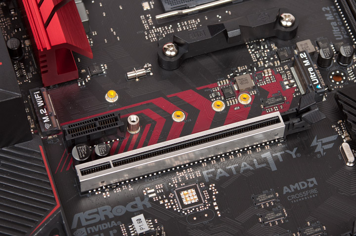 Есть три компактных гнезда M.2, два из которых можно использовать для нужд накопителей. Устройства типоразмера 22110 не поддерживаются.