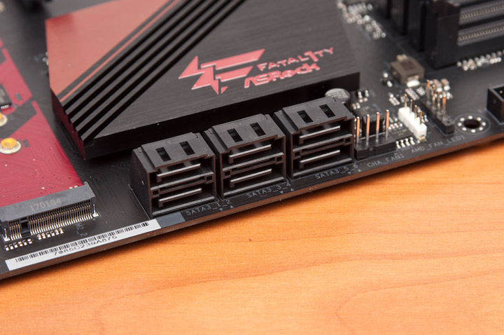 Выходов SATA всего шесть, все они продольного типа. Исключительно неудобно расположено гнездо для корпусного вентилятора под номером «1», практически любая современная видеокарта будет осложнять к нему доступ.