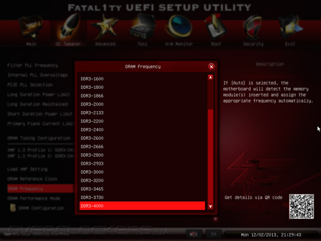 Для оперативной памяти доступна установка профилей X.M.P., а в ручном режиме пользователи могут выбирать частоты до 4000 МГц включительно.