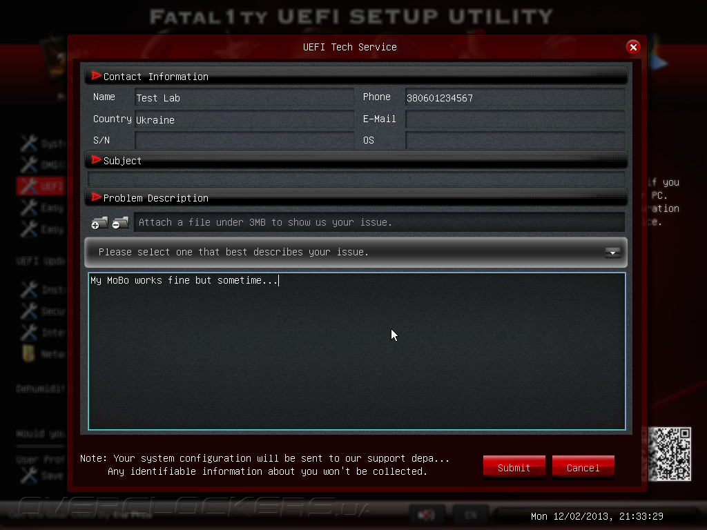 Для отправки обращений в техническую поддержку поставщика можно воспользоваться функцией UEFI Tech Service. Также присутствует возможность загрузить все необходимые драйверы на сменный накопитель прямо в меню настройки.