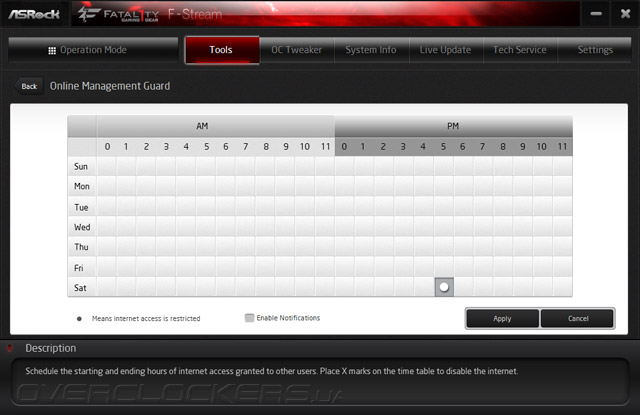 Меню Online Management Guard дает возможность по расписанию ограничить доступ в локальную сеть, а с помощью утилиты FAN-Tastic Tuning пользователи могут гибко настраивать скорости вращения вентиляторов в зависимости от температур.