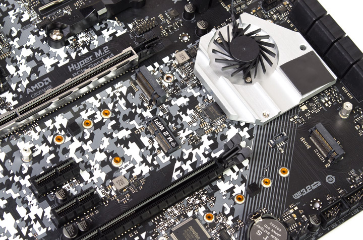 Верхнее посадочное место для SSD предусматривает ограничение по длине — 80 мм, а ещё сюда не подведены линии SATA, с нижним подобных нюансов удалось избежать: предельная длина — 110 мм, имеется поддержка как SATA, так и PCI-E x4.