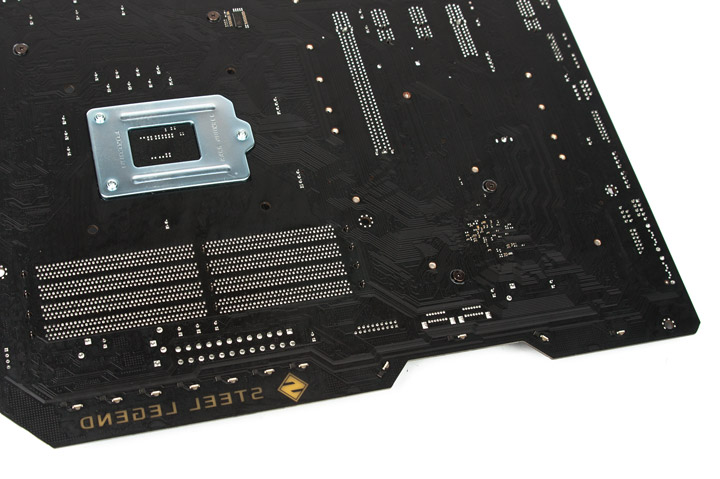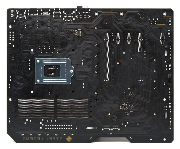 Сзади находится малое число электронных компонентов, в области размещения усилительной пластины СО для процессора вряд ли что-то будет препятствовать процедуре монтажа.
