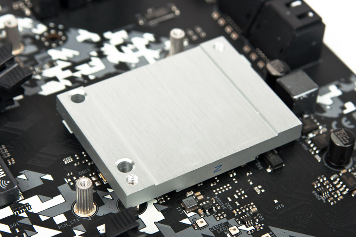 Охладитель у хаба составной, скомбинирован радиатор для нижнего гнезда M.2 и, непосредственно, для чипа от Intel.