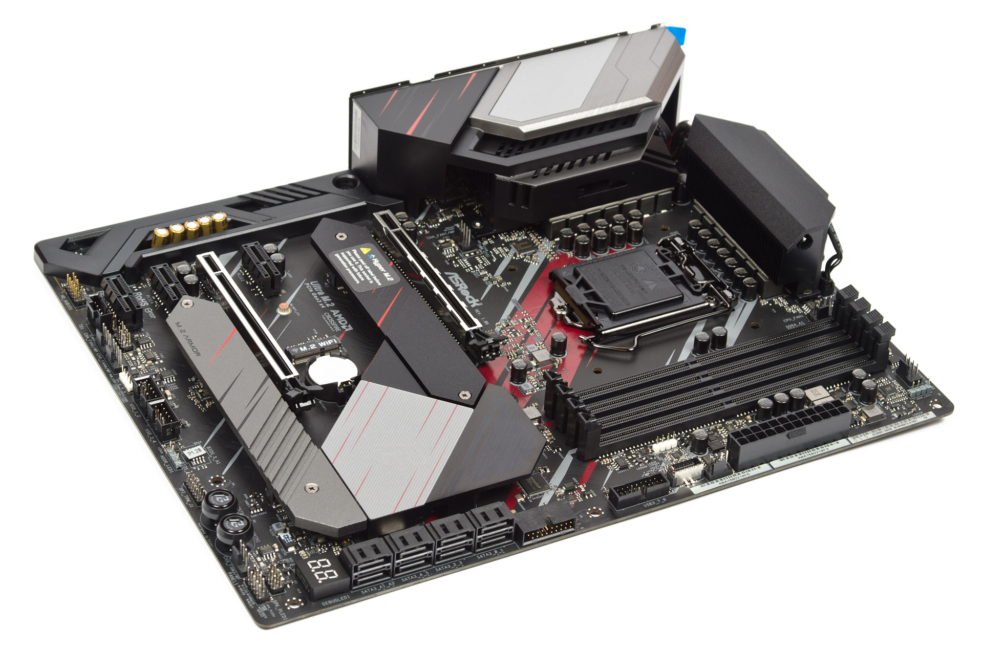 Именование модели новое, так продукт решили выделить среди прочих, аббревиатура PG отсылает нас к серии игровых плат Phantom Gaming. Потому среди бонусов есть утилита Nahimic для звуковой подсистемы. Высокий статус изделия подтверждается наличием кнопок включения и перезагрузки на поверхности устройства, есть и индикатор кодов POST. Ближе с деталями будем знакомиться по ходу обзора, для начала — таблица с главными свойствами и возможностями новинки.