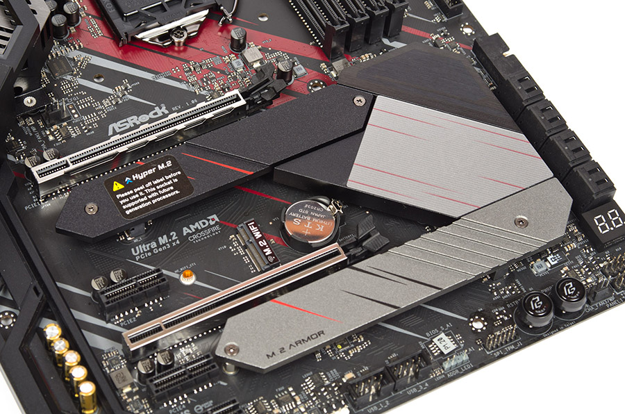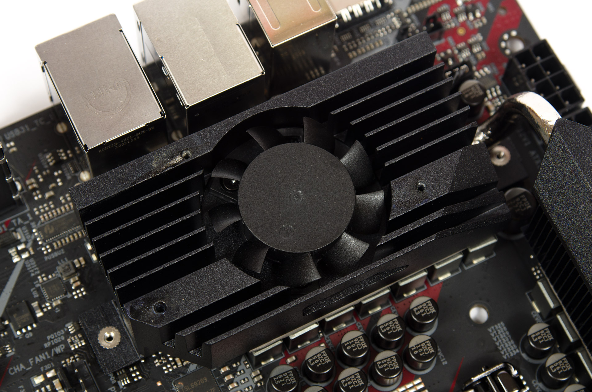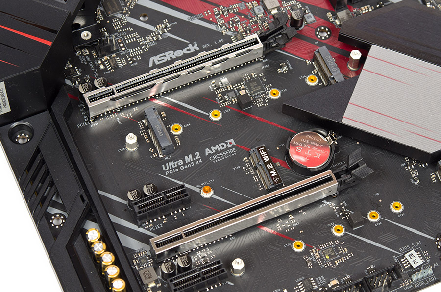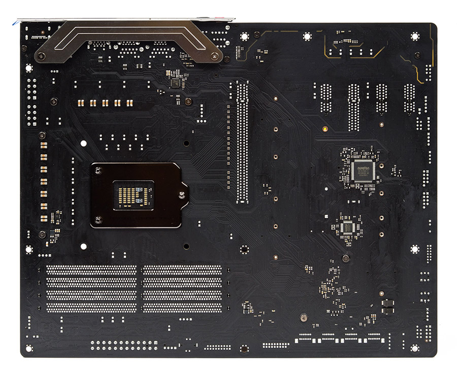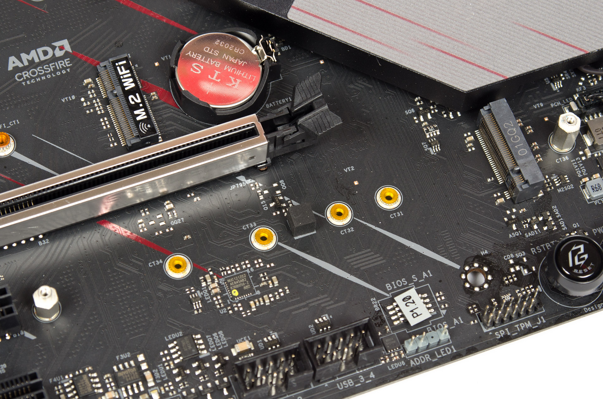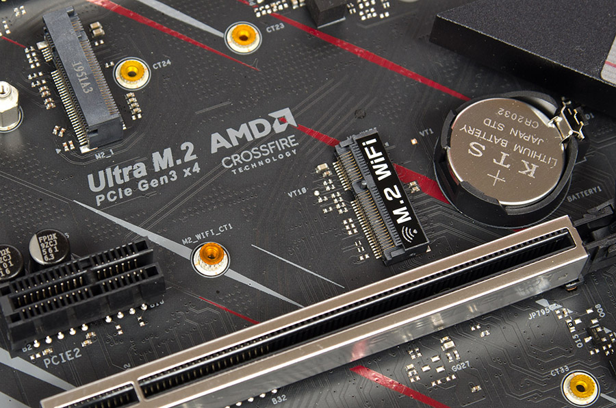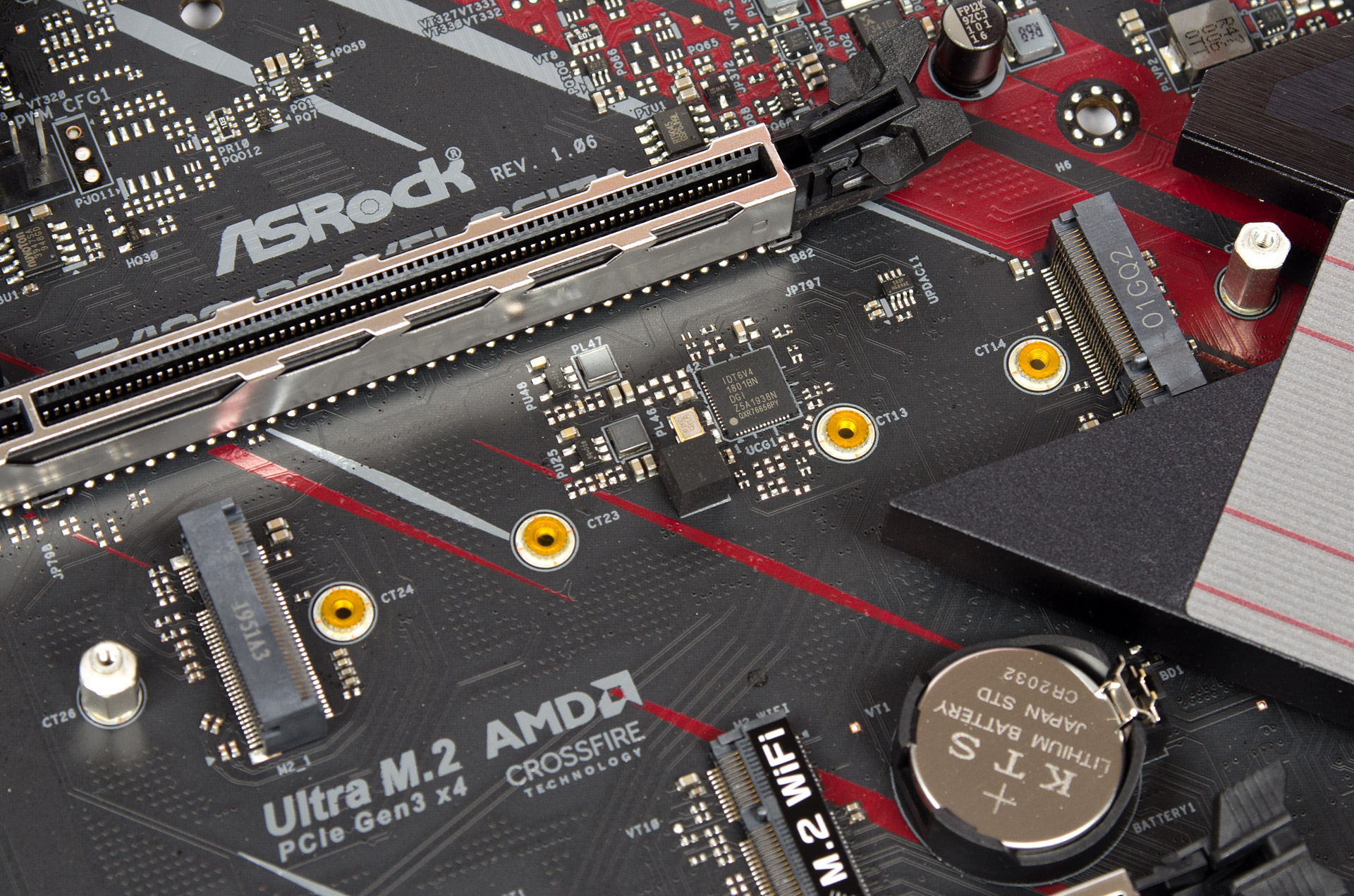 В нетипичном для последних лет стиле, первый же слот PCI-E предназначен для видеокарты. Вероятно, сделано это в угоду будущей совместимости с PCI-E 4.0 для процессорных линий. Проблемы совместимости стендовой ВК и двухсекционного суперкулера не возникло.