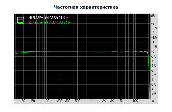 | 24 бит | Z87 Extreme6 (ALC1150) 44,1 кГц | Z87 Extreme6 (ALC1150) 48 кГц | Z87 Extreme6 (ALC1150) 96 кГц | Z87 Extreme6 (ALC1150) 192 кГц | ||||