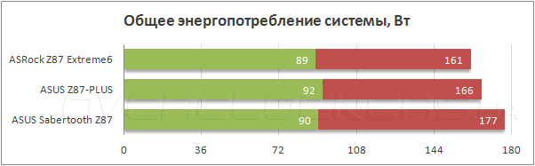 Склонность продукции из конкурирующего лагеря к повсеместному завышению напряжения выводит Z87 Extreme6 в лидеры по энергоэффективности. Более того, активация Power Saving режима в утилите A-Tuning понижает этот уровень до значений 85–155 Вт без утраты функциональности Turbo Boost.