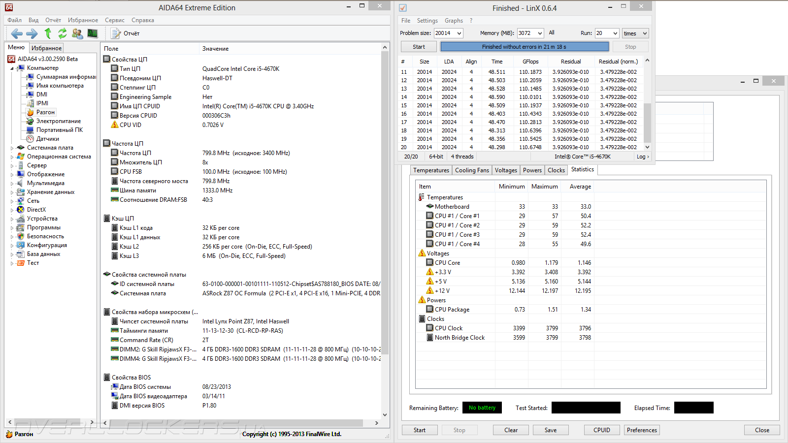 Вначале пару слов о режиме работы технологии Turbo Boost. Похоже, всем продуктам, претендующим на роль если не флагманов линейки, то лидеров сегмента, присуща единая особенность — Core i5-4670K, установленный на каждом из них, функционирует на частоте 3,8 ГГц при любом типе нагрузки.