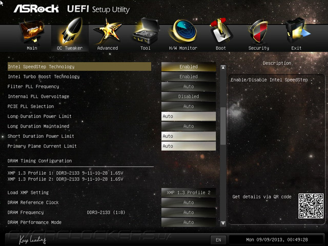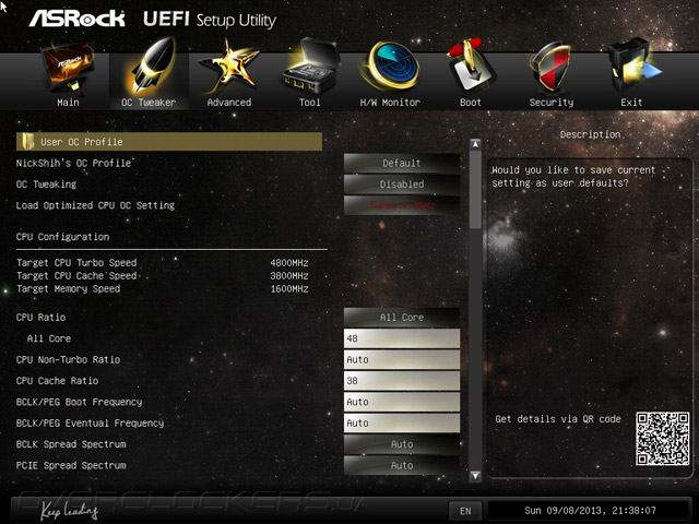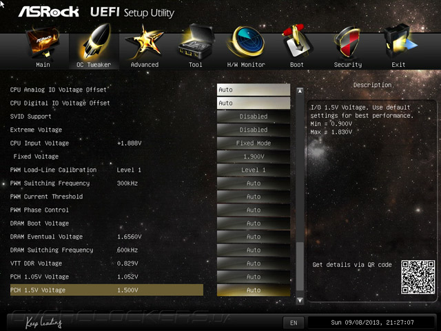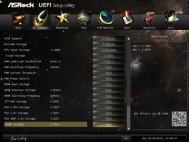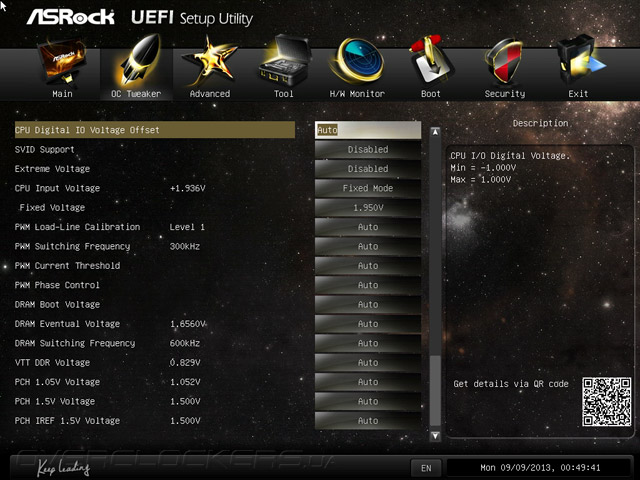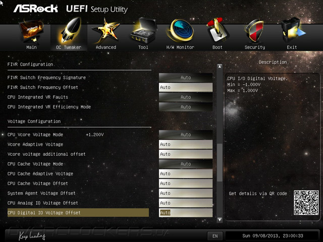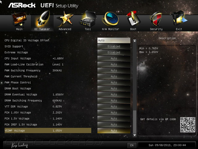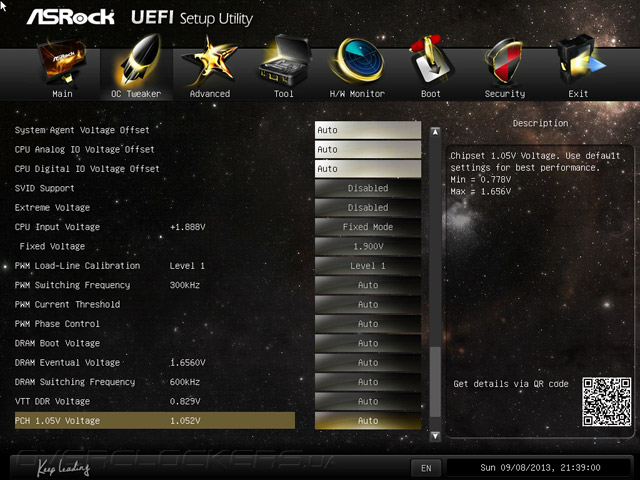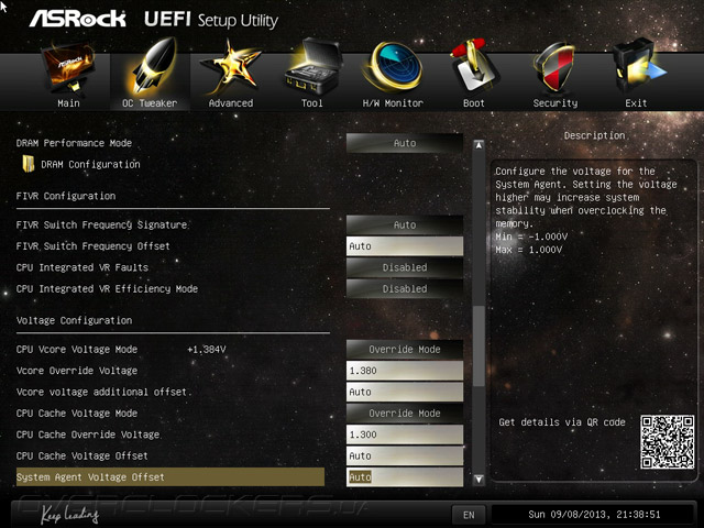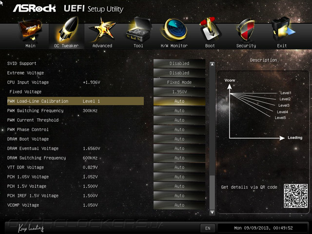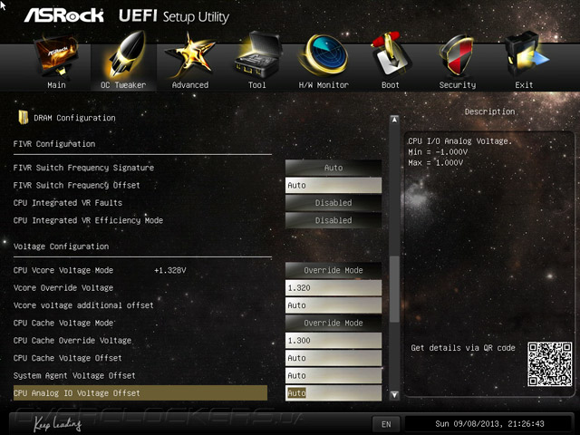 Что интересно, настройки не являлись программно применяемым профилем, а были установлены напрямую в UEFI. Здесь мы увидели активированную технологию Turbo Boost и форсированные на разных отметках напряжения питания CPU и Uncore.