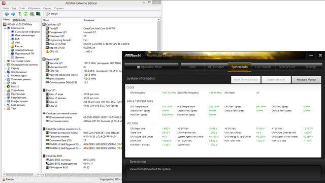 Важно, что при таком способе разгона (множители CPU и Cache оставались в положении Auto, как и выставляемое на них напряжение) работоспособность энергосберегающих технологий не была нарушена. Для истинных значений действующих напряжений мы приведём скриншот из Formula Drive.