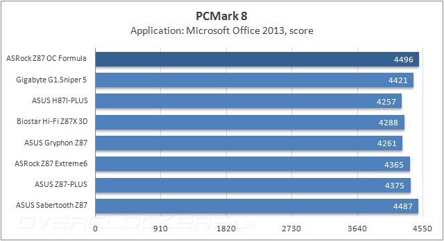 Результаты Z87 OC Formula в тестах PCMark 8 очень похожи на полученные другими продуктами из клуба «3800 МГц».