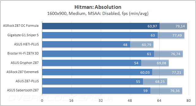 Результаты игровых приложений несколько необычны. В двух далеко не самых новых играх плата демонстрирует ожидаемый уровень быстродействия, а вот в Hitman: Absolution продукт одерживает уверенную победу. Раз за разом мы запускали бенчмарк с требовательными к ресурсам системы настройками и получали одинаково высокий (на фоне конкурентов) результат.