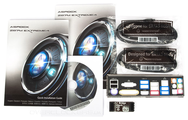 - один жёсткий мостик для организации SLI из двух видеокарт.