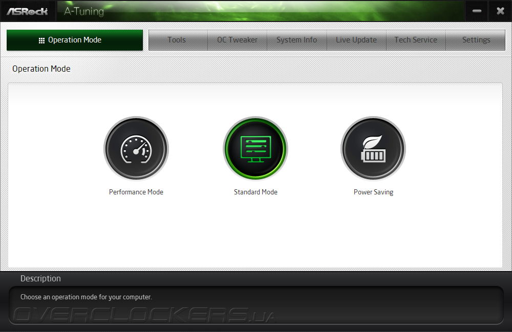 На странице Operation Mode находятся простые механизмы по влиянию на быстродействие системы, эффект от которых мы опишем в следующем разделе.