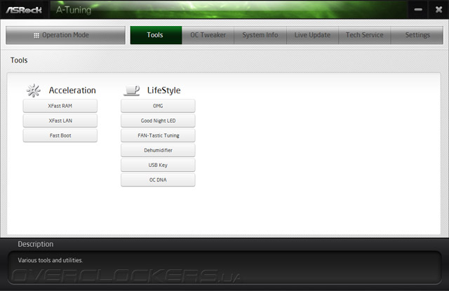 Все фирменные решения ASRock собраны на странице Tools. Внешний вид каждой из них можно подсмотреть в обзоре Z87 OC Formula, а мы остановимся подробней лишь на FAN-Tastic Tuning.