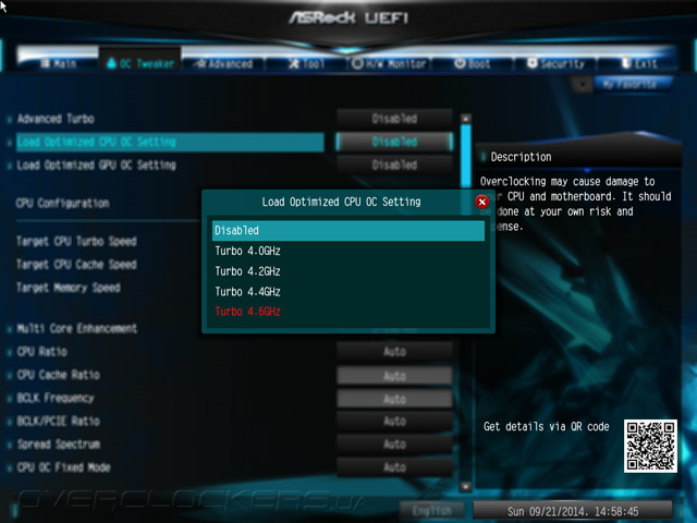 | CPU OC fixed mode | Auto/Enabled/Disabled | |