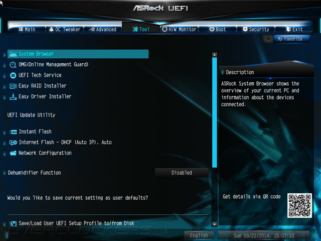Иначе говоря, UEFI является лишь творчески переосмысленным, но никак не в функциональном плане. Даже механизм установки входного напряжения остался таким же, как, к примеру, в составе ASRock Z87M Extreme4, где используется такой же ШИМ-контроллер, как и у Z97 Anniversary.