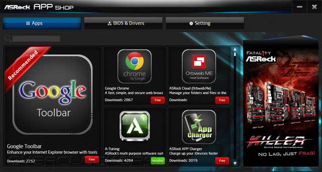 Вдохновляясь современными тенденциями, специалисты из ASRock придумали назвать центр по загрузке фирменных программ просто и понятно — APP SHOP. В обязательном порядке он следит и за собственными обновлениями.