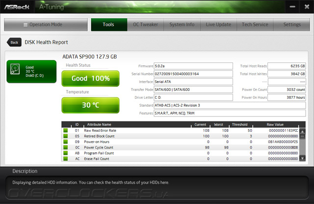 Весь набор утилит прежде формировался также под эгидой этого комплекса. Все они находятся на странице Tools. В этот раз, помимо привычных утилит, здесь удалось обнаружить одну новинку — Disk Health Report. Приято, что она оказалась изготовлена не ради проформы: корректно удалось опознать используемую модель SSD и отобразить ряд специфических параметров.