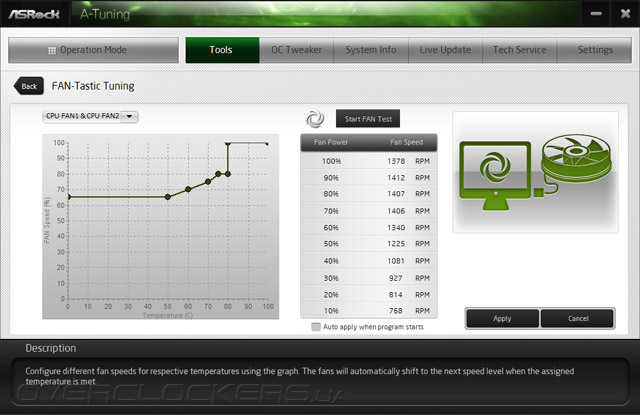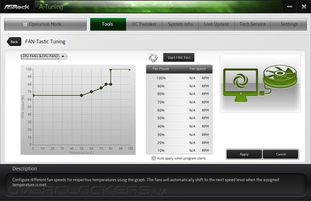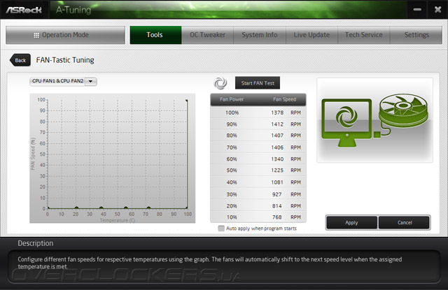 Здесь же находится и модуль по работе с охладителями, именуемый как FAN-Tastic Tuning. Он позволит откалибровать вентилятор, и по полученному в итоге паспорту можно сформировать желаемый алгоритм работы изделия; никаких ограничений для проведения этого практически нет.