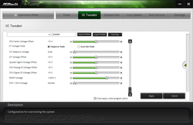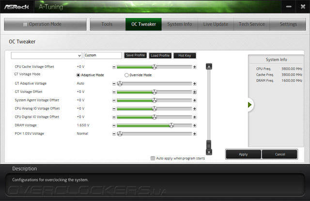 Тонкая настройка производится в созвучном UEFI-разделу — OC Tweaker, где продублирована полученная оттуда информация (никаких дополнительных возможностей нет).