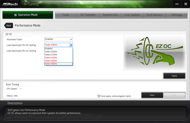 Нельзя не отметить готовые профили повышения быстродействия системы буквально в один клик. К слову, при установке дискретного видеоадаптера из UEFI пункт Advanced Turbo куда-то исчезает, но остаётся возможность его использования с привлечением фирменного ПО в среде Windows.