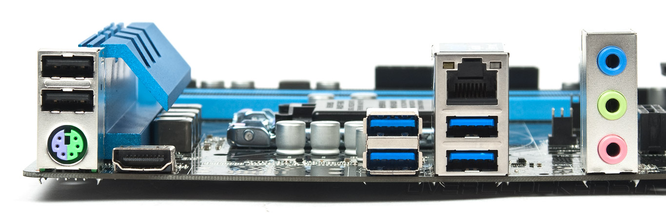 Набор интерфейсных разъёмов на задней панели мягко говоря не богат. Единственный цифровой видеовыход и тот не оснащён конвертером уровней сигналов, хотя такие элементы практически повсеместно установлены на других платах. Всеми способами производитель даёт понять, что предоставляет пользователю лишь базовый набор возможностей.