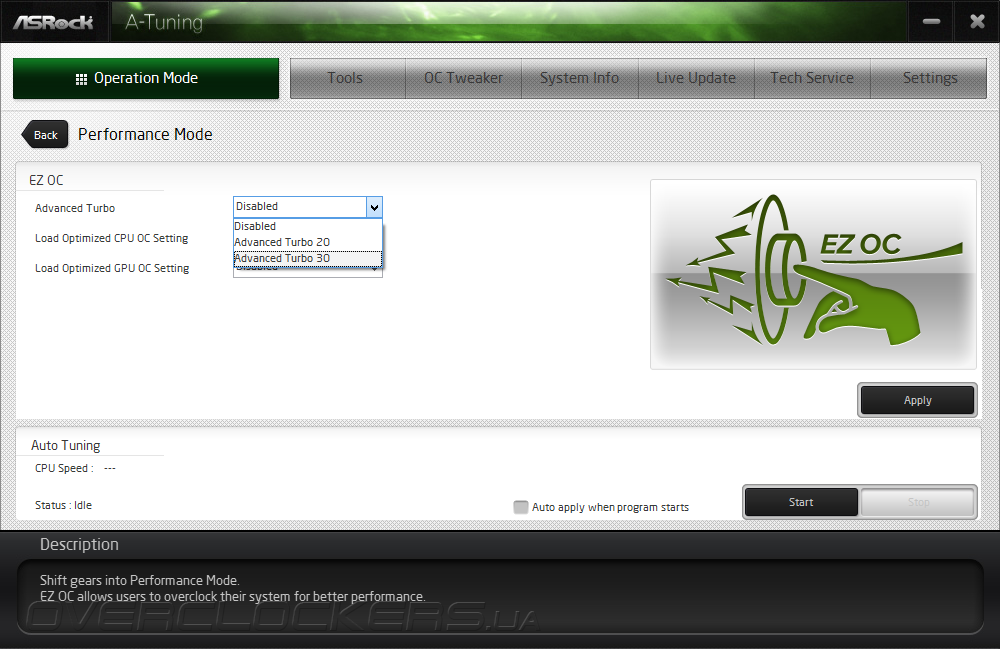 Только что рассмотренный комплекс A-Tuning позволяет без труда воспользоваться готовыми профилями по увеличению быстродействия системы. Как и у старших продуктов, всего есть три различных способа, и они не слишком изменились по сравнению с прошлогодней продукцией.