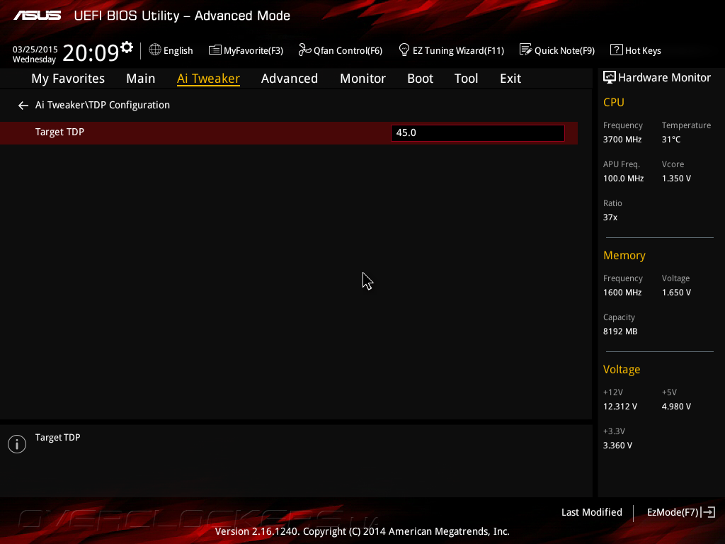 За настройку ограничений теплового пакета отвечает подраздел TDP Configuration, в котором единственный параметр Target TDP может принимать любое значение в диапазоне от 45 до 65 Вт.