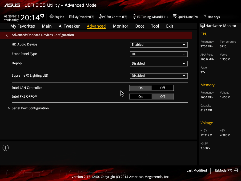 В качестве прошивки на системной плате A88X-Gamer, как и во всех современных продуктах ASUS, используется управляющий микрокод UEFI разработки компании AMI. Цветовая гамма интерфейса и общая организация меню настройки напоминает о моделях из линейки Republic of Gamers. Прошивка имеет два режима отображения: Advanced Mode, дающий максимальные возможности по управлению материнской платой, а также EZ Mode, предназначенный для начальной настройки UEFI Setup. Например, EZ Mode позволяет установить дату и время, настроить работу вентиляторов, задать порядок загрузочных устройств, а также получить информацию об установленных компонентах и считать показания аппаратного мониторинга.