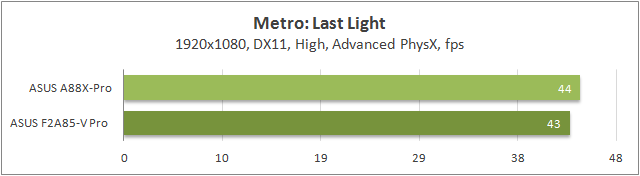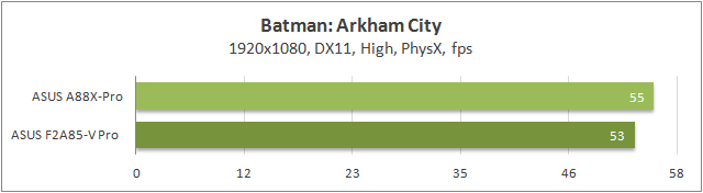 В современных 3D-играх наблюдается та же картина, ASUS A88X-Pro уверенно лидирует, причем, её преимущество особо заметно в играх, чувствительных к быстродействию вычислительной подсистемы.
