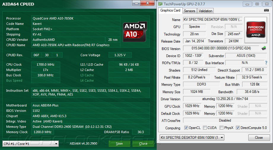 Что касается разгона встроенного видеоядра, то ASUS A88XM-Plus позволила нарастить частоту до 1029 МГц. Для этого потребовалось увеличить на 0,15 В напряжение APU1.2V Voltage, отвечающее за питание интегрированного графического ускорителя.