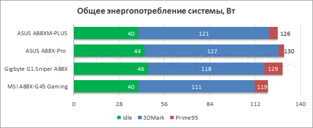 Для измерения энергопотребления тестовых стендов использовался прибор Basetech Cost Control 3000. С его помощью были оценены пиковые значения потребляемой мощности при прохождении стресс-теста Prime95 и графического бенчмарка 3DMark, а также среднее энергопотребление тестовых стендов при простое.