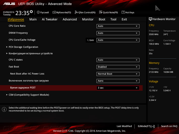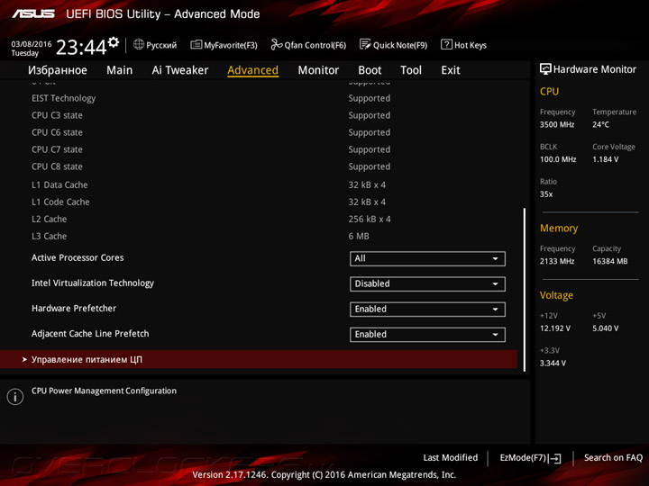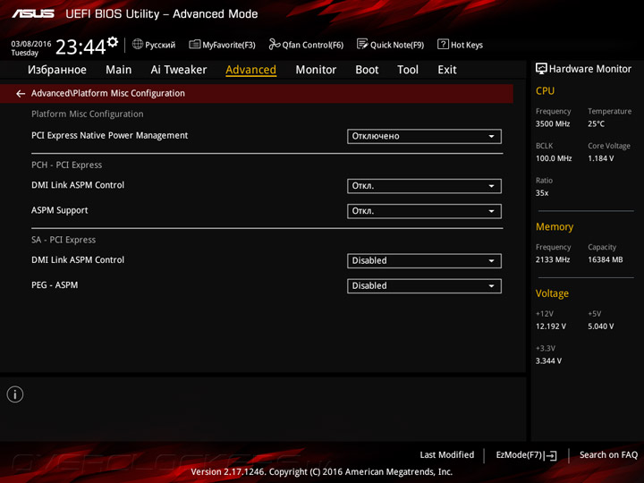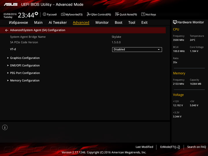 В Advanced Mode пользователю предстоит пройтись по нескольким разделам. Первым из них является My Favorites (или «Избранное»), который позволит собрать самые актуальные или используемые настройки. Следующий раздел — Main — отвечает за основные настройки прошивки, позволяет установить пароль и изменить язык. К слову, любители покопаться в настройках на русском языке будут изрядно разочарованы. Локализация UEFI страшно хромает, ведь переведено только несколько несущественных пунктов, зато многие действительно необходимые подсказки остались на английском.
