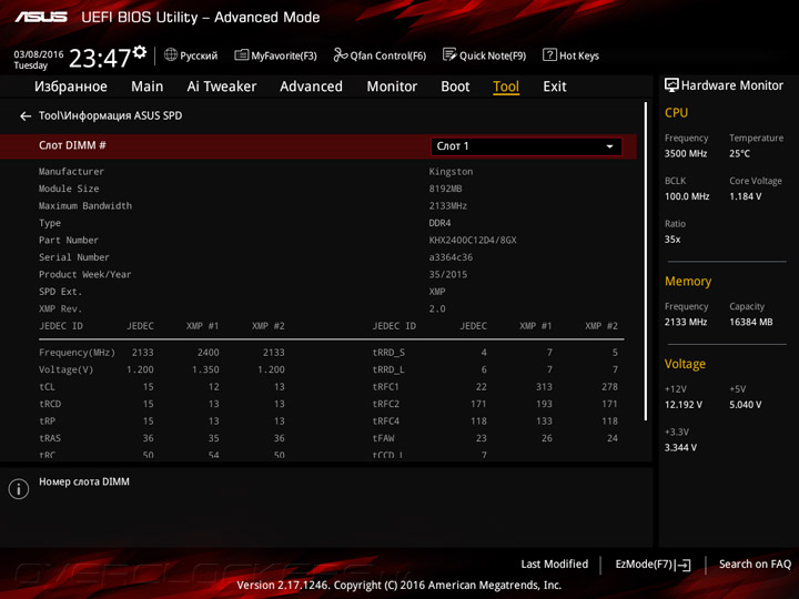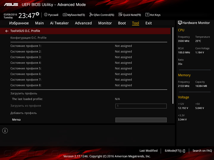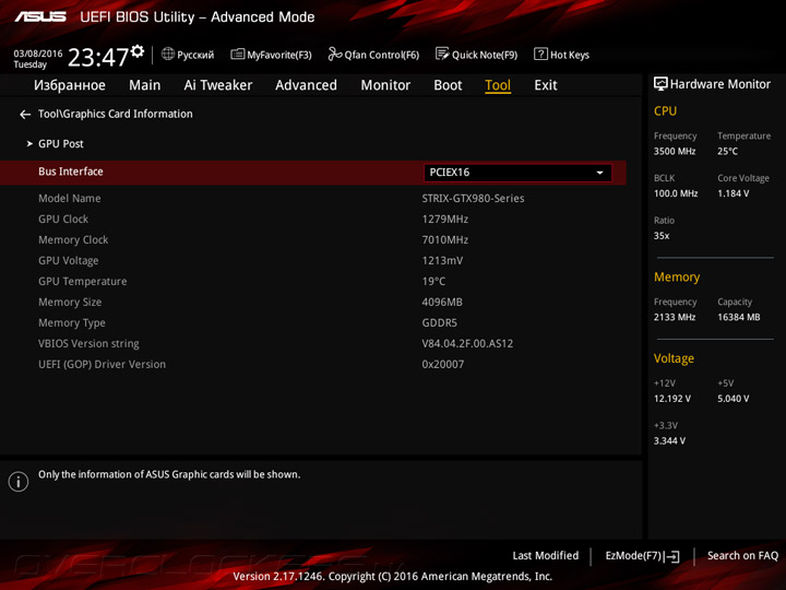 Закладка Tool и её подразделы позволят сохранить профили настроек прошивки, а также получить информацию о модулях оперативной памяти и видеокарте.