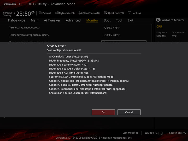 Наконец, при выходе, UEFI предоставит пользователю список внесенных изменений, чтобы дополнительно проверить их на правильность и полноту.