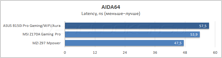 С тестированием общей производительности системы на ASUS B150i Pro Gaming/Wi-Fi/Aura уже сложней. Фактически, единственный разгон, доступный пользователю платы на системной логике B150 — это управление таймингами оперативной памяти. Но учитывая рыночное позиционирование продукта, ориентирование скорее на пользователей, не интересующихся разгоном и, прямо скажем, сомнительный прирост от игр с таймингами исключительно в синтетике, смысла в этом процессе для конкретного продукта я не вижу. В связи с этим, системная плата тестировалась на настройках по умолчанию с выбором для оперативной памяти HyperX Savage HX424C12SBK2/16 объемом 16 ГБ профиля XMP 2133.