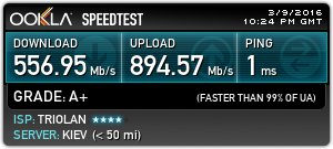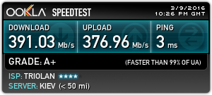 Вкратце упомяну о встроенном Wi-Fi-модуле. Без дополнительных драйверов и утилит при непосредственной близости к роутеру, устройство смогло поднять 400-мегабитный канал, а значит его пропускной способности хватит подавляющему числу пользователей. Ниже приведено два результата — для беспроводного и проводного подключений соответственно.