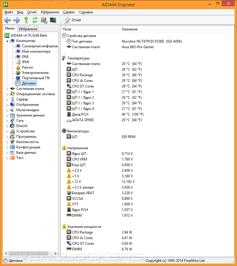 Дополнительно хочется отметить высокую информативность показателей, предоставляемых B85-Pro Gamer как в рамках фирменного ПО, так и считываемого сторонними продуктами. Их целиком достаточно для прозрачной процедуры проведения разгона.