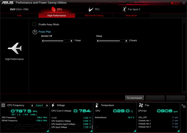 После осмотра программных возможностей трудно согласиться с высоким статусом «игрового» продукта, возложенного на эту плату, учитывая скудную оснастку в сфере настройки звуковой подсистемы и немного путанную, возможно, имеющую проблемы с функциональностью, сетевую сферу работы. Но с мониторингом напряжений никаких проблем нет, также хорошо представлена возможность по настройке системных охладителей. Главный вопрос — как теперь проявит себя плата при разгоне.