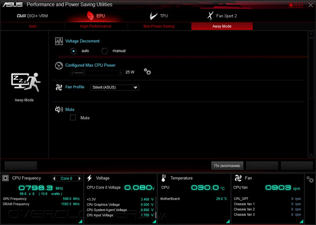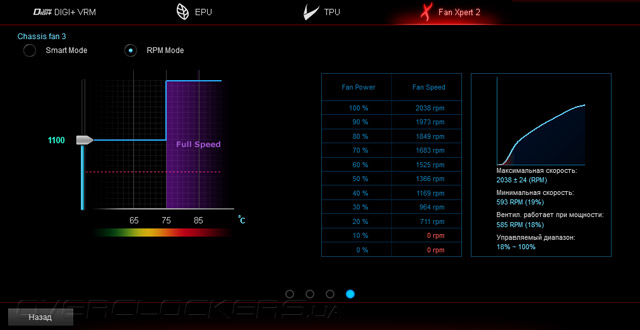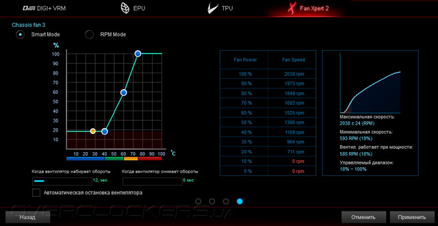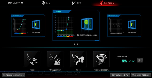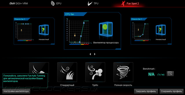 Самым полезным, на мой взгляд, из всего этого набора является компонент Fan Xpert 2. Главной его особенностью выступает калибровка подключенных вентиляторов, после которой полученные паспорта изделий дадут возможность настроить их работу согласно собственным предпочтениям. Можно составить особый алгоритм работы или же зафиксировать обороты на определённой позиции, а в случае высокого нагрева ЦП они автоматически возрастут до максимальных.