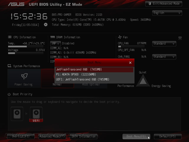 Процедуру инициализации оборудования устройство преодолевает весьма быстро, но в случае необходимости что-либо поменять следует прибегнуть к возможностям меню Boot.