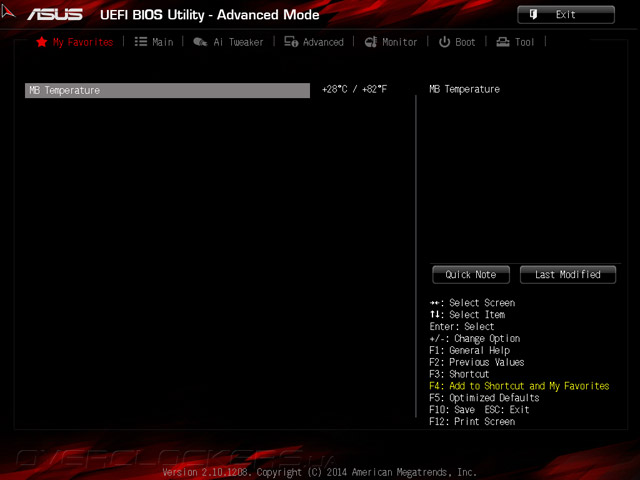 Advanced Mode обладает полным набором механизмов для настройки системы. Первый раздел My Favorites позволяет сформировать список из наиболее часто используемых параметров для быстрого доступа к ним.