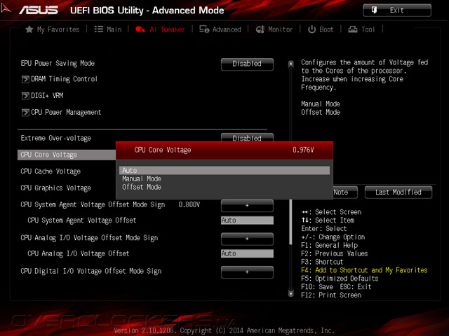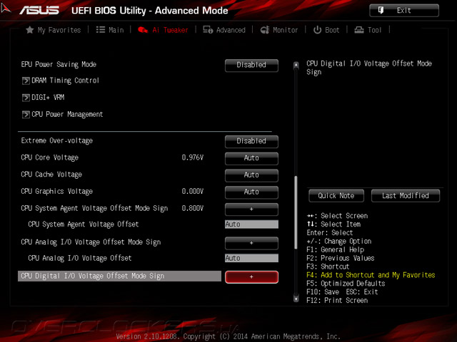 Ai Tweaker содержит полный спектр возможностей по тонкой настройке и разгону, не хватает лишь пунктов, относящихся к опорной частоте. Во всём остальном набор полный, ничем не упрощённый относительно более старших моделей ASUS. Разве что частоту оперативной памяти выше 1600 МГц поднять не выйдет, а всё из-за ограничений возможностей чипсета.