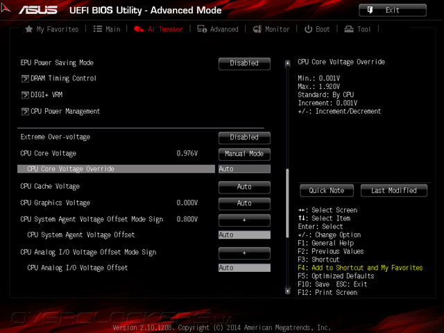 | CPU Core Voltage Override (В) | 0,001–1,92 | 0,001 |