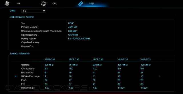 Наконец, на странице Tool находятся фирменные механизмы: обновления прошивки, сохранения профилей с настройками системы и просмотра информации о SPD и XMP модулей оперативной памяти. К слову, последний механизм некорректно отобразил содержимое используемого комплекта.