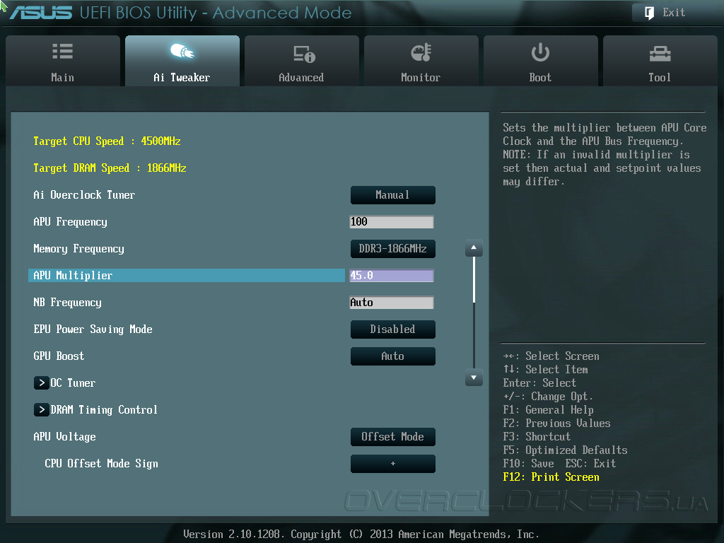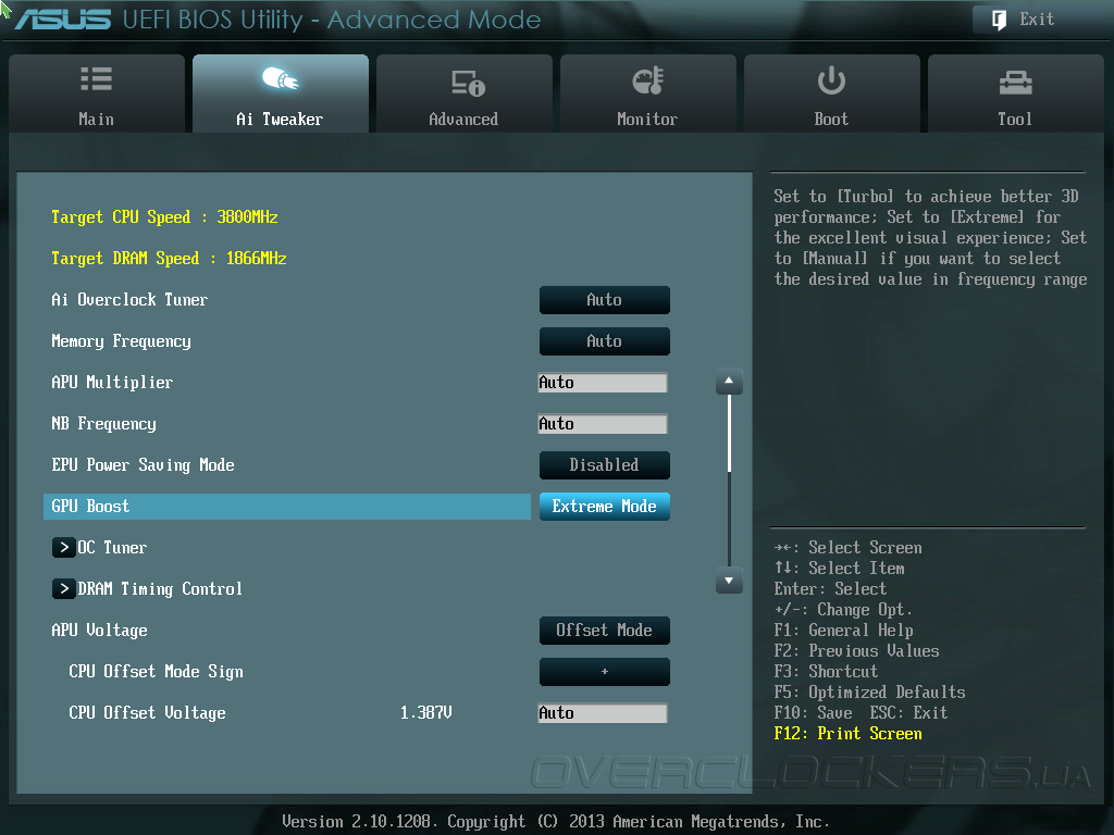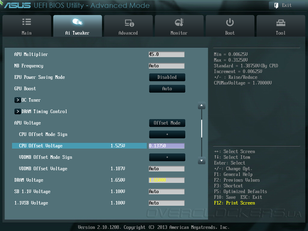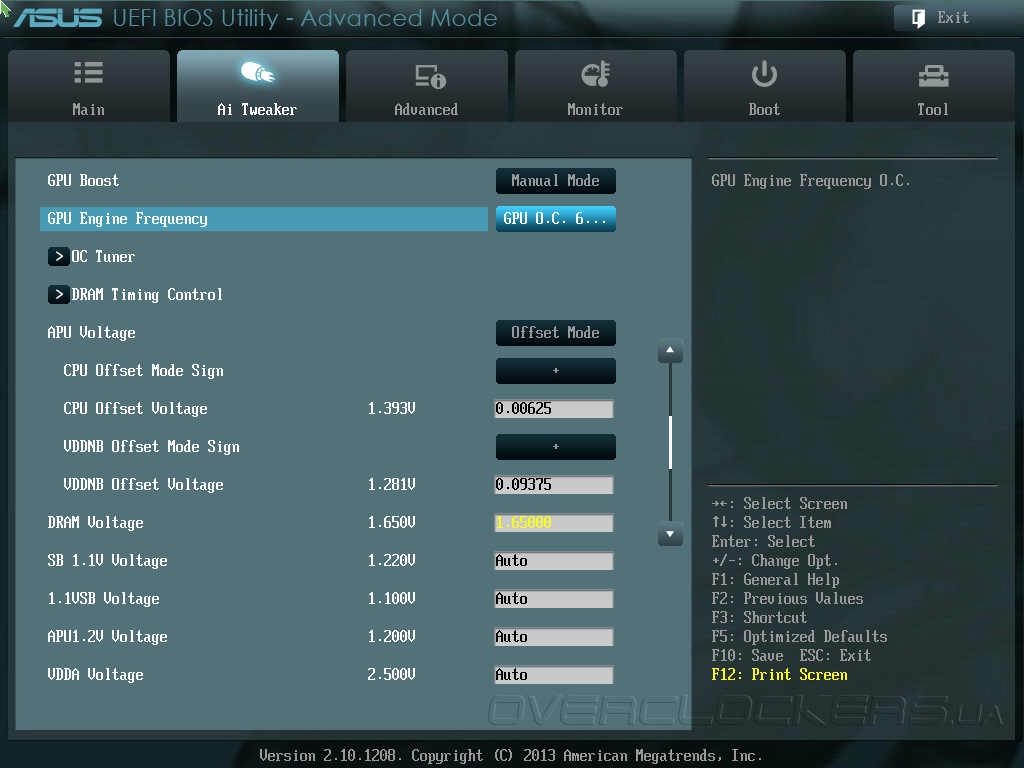 Материнские платы от ASUS всегда славились богатым на настройки «биосом», не стала исключением и флагманская модель для платформы FM2 — F2A85-V Pro. К счастью, и рассматриваемая плата оказалась не обделенной в настройках, отвечающих за разгон компонентов.