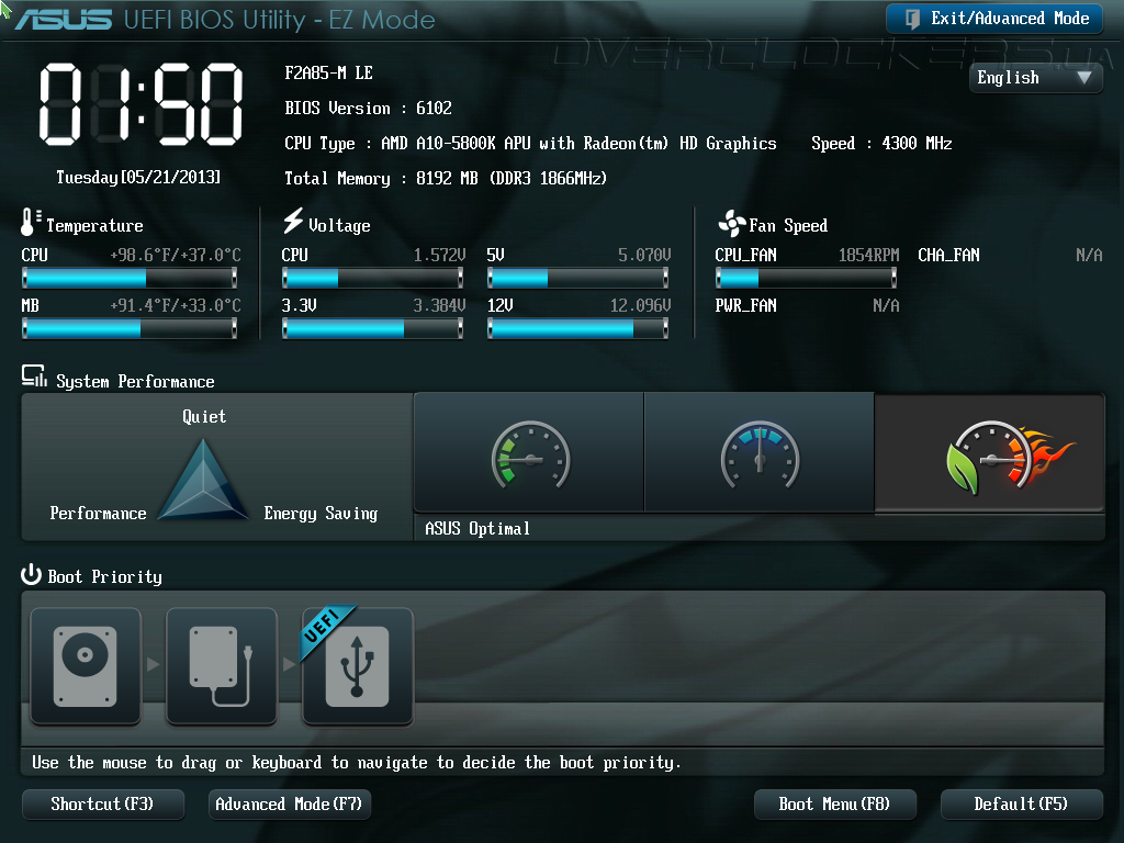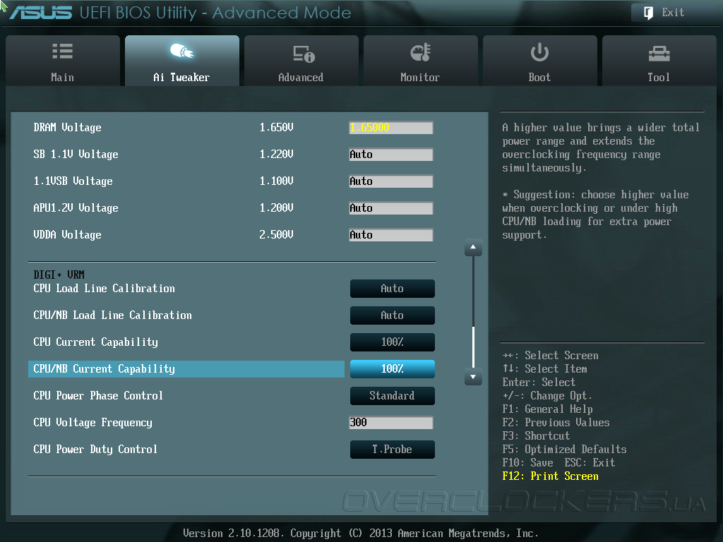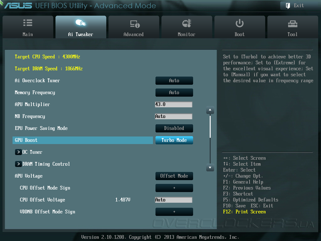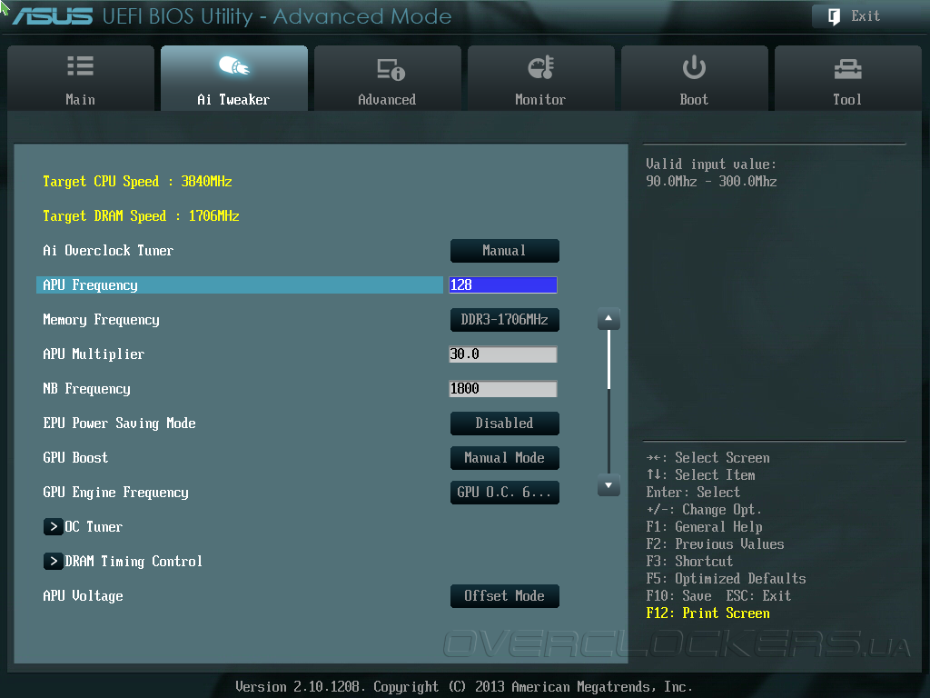 Материнские платы от ASUS всегда славились богатым на настройки «биосом», не стала исключением и флагманская модель для платформы FM2 — F2A85-V Pro. К счастью, и рассматриваемая плата оказалась не обделенной в настройках, отвечающих за разгон компонентов.